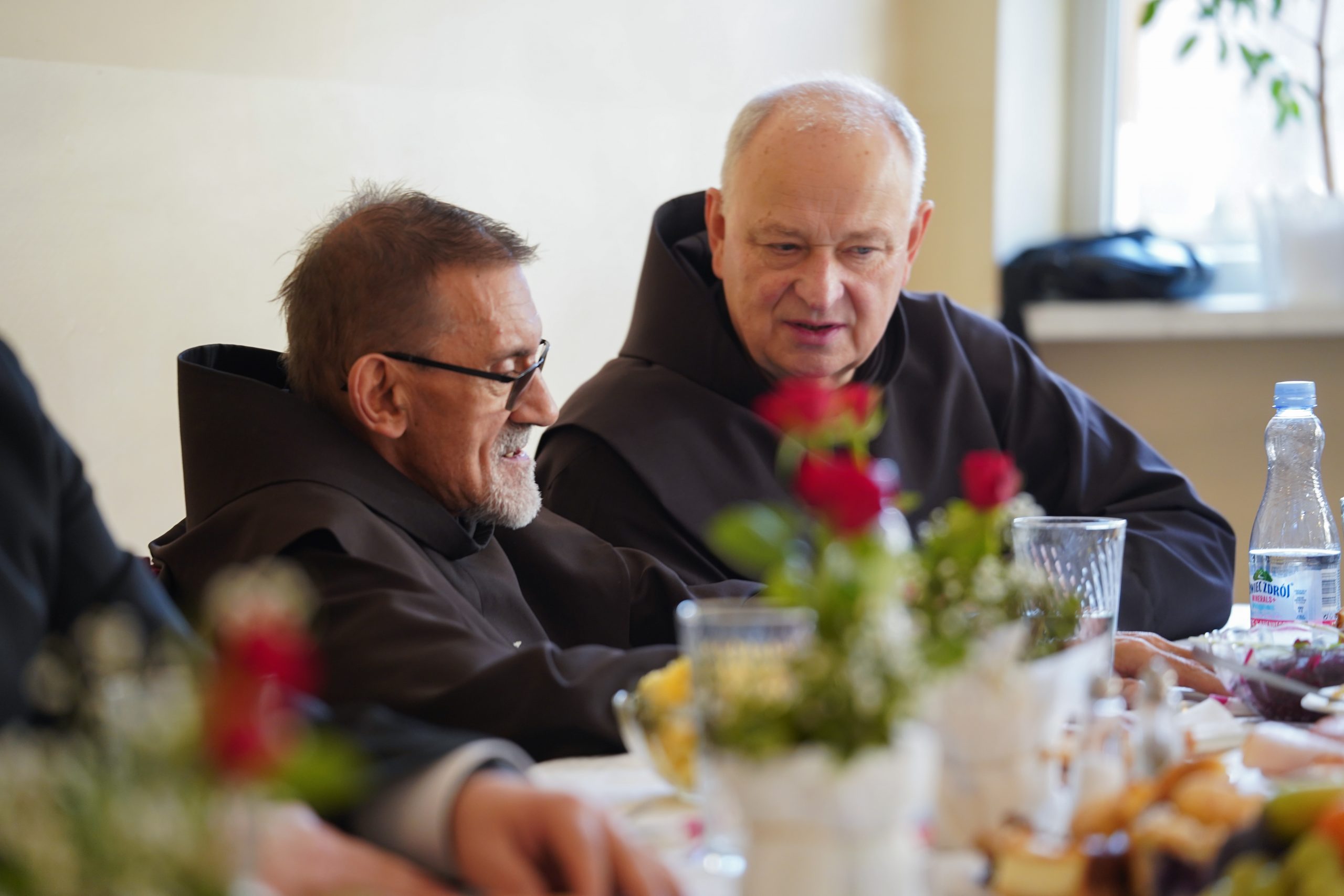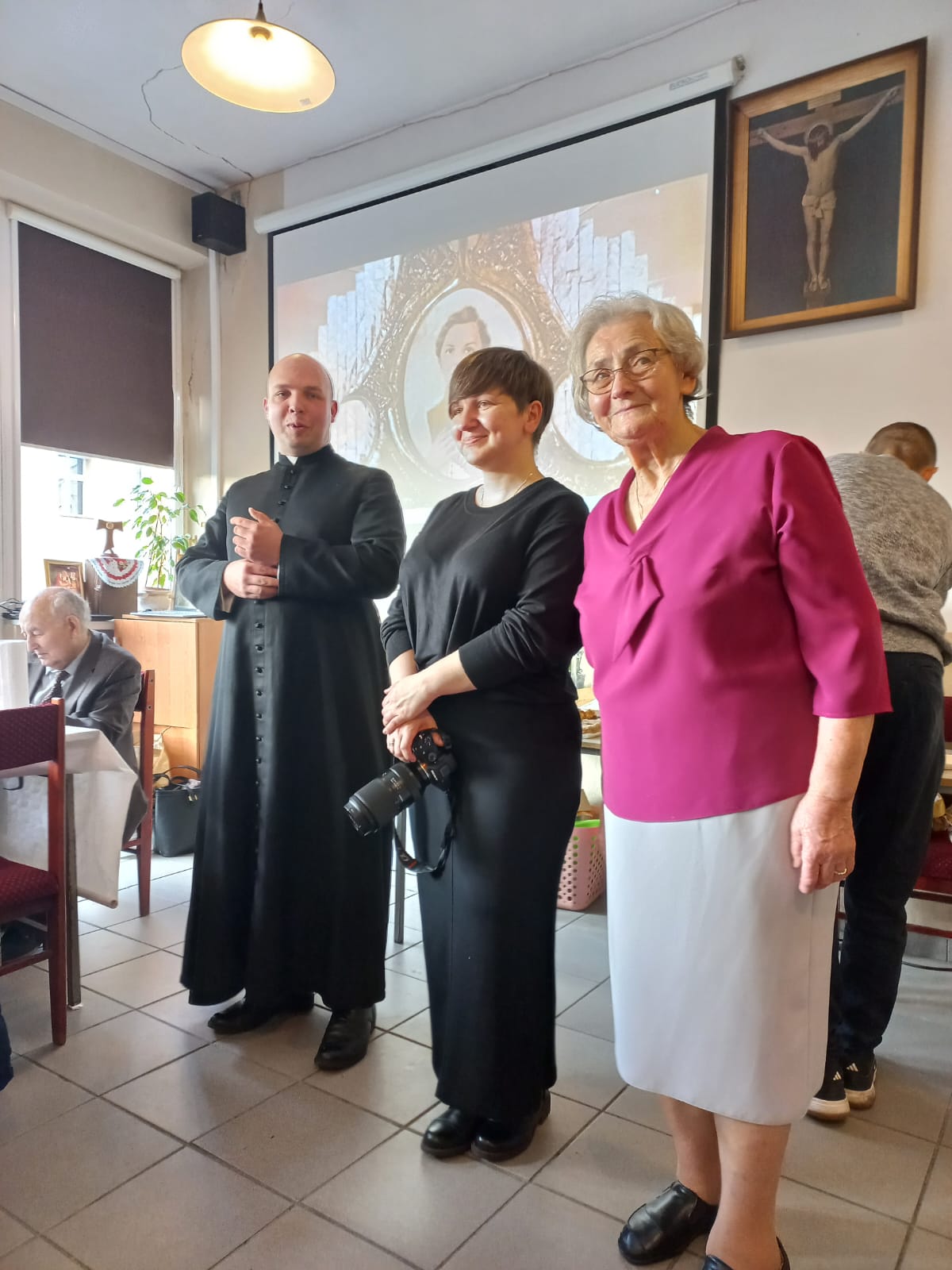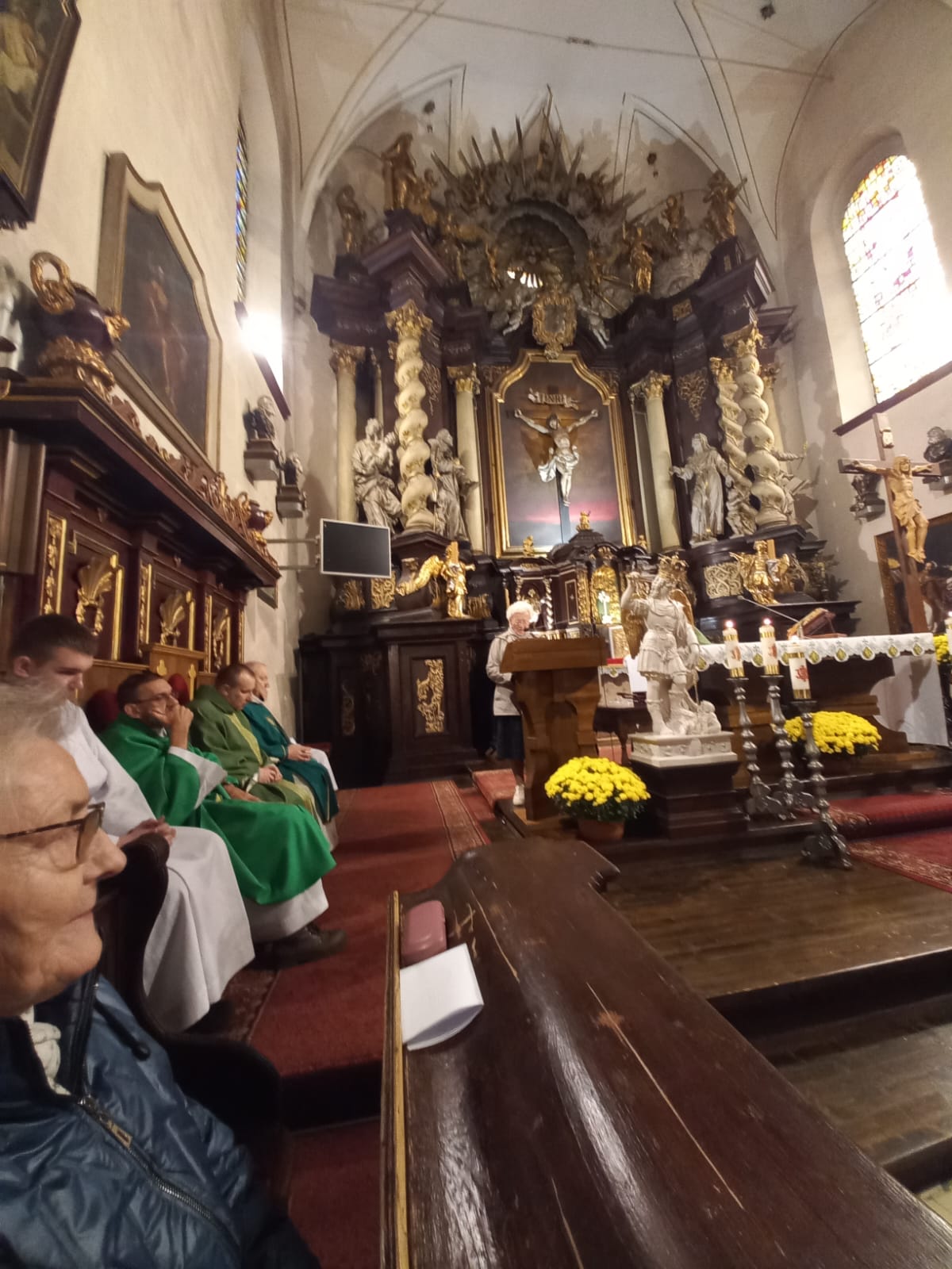 Rozpoczęliśmy Mszą Świętą ogodz. 12:00, której przewodniczył ks. Wiesław Wawrzynów, zaś w koncelebrze byli: o. Krystian Pieczka (obecny asystent) i o.Kunibert Kubosz (były asystent). Po zakończeniu Mszy Świętej udaliśmy się na wspólne świętowanie do domu katechetycznego. Wśród zaproszonych gości byli duszpasterze z naszej parafii, przedstawiciele grup parafialnych, wspólnoty FZŚ z Kłodzka, Ząbkowic Śląskich i Wrocławia oraz ks. Krzysztof z archidiecezji częstochowskiej i s. Marta z Warszawy z Rady Narodowej FZŚ, którzy wyświetlili film o bł. Anieli Salawie, patronce franciszkanów świeckich.