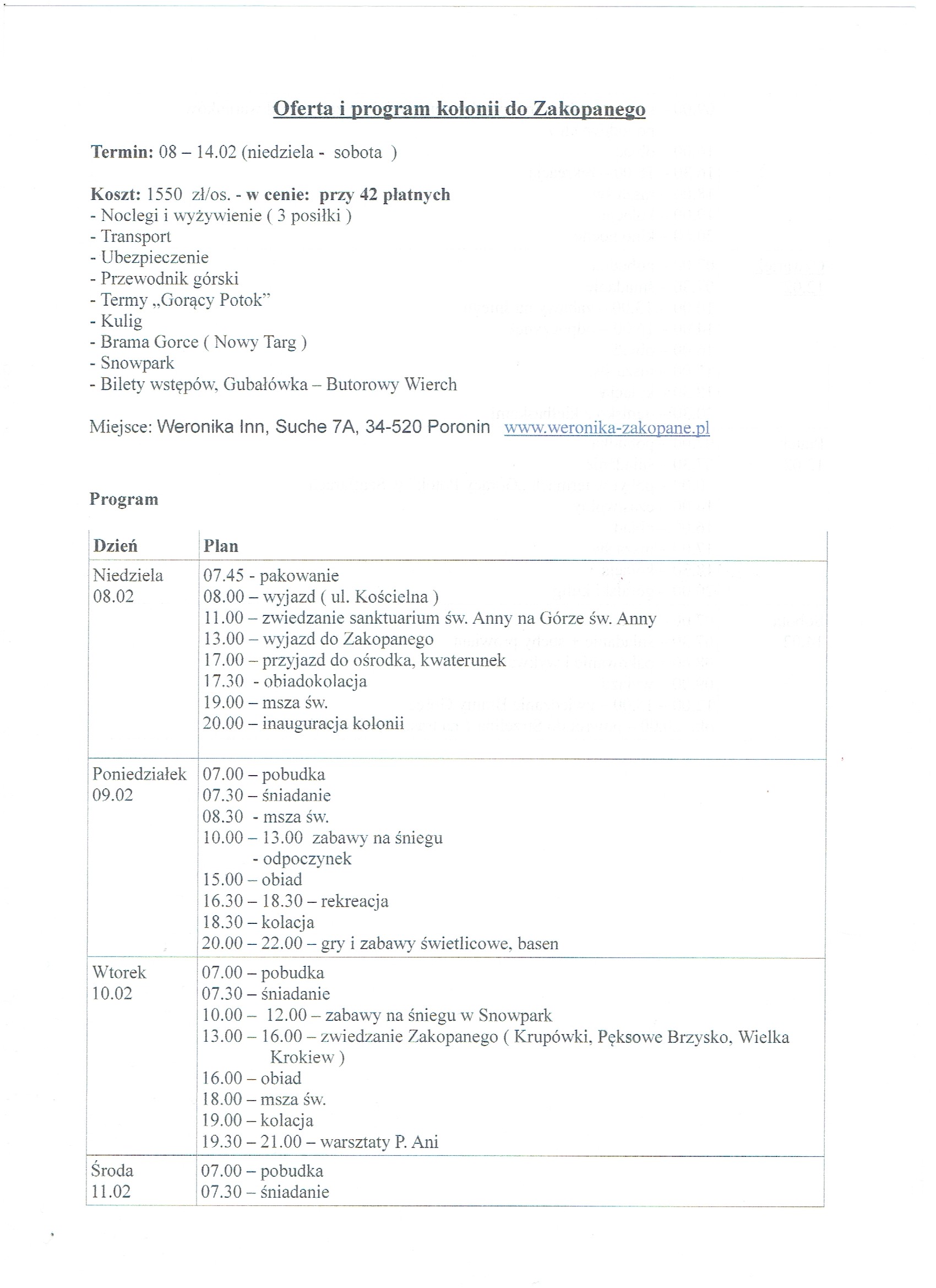 KARTA KWALIFIKACYJNA UCZESTNIKA WYPOCZYNKU zimowisko 26r.
